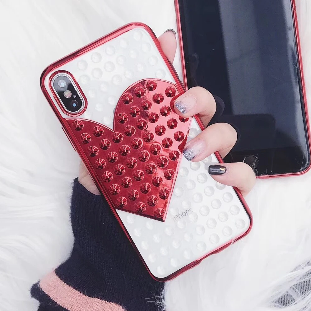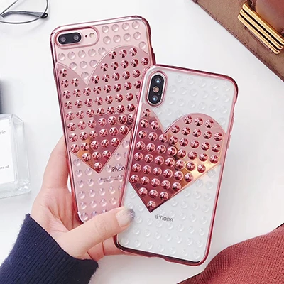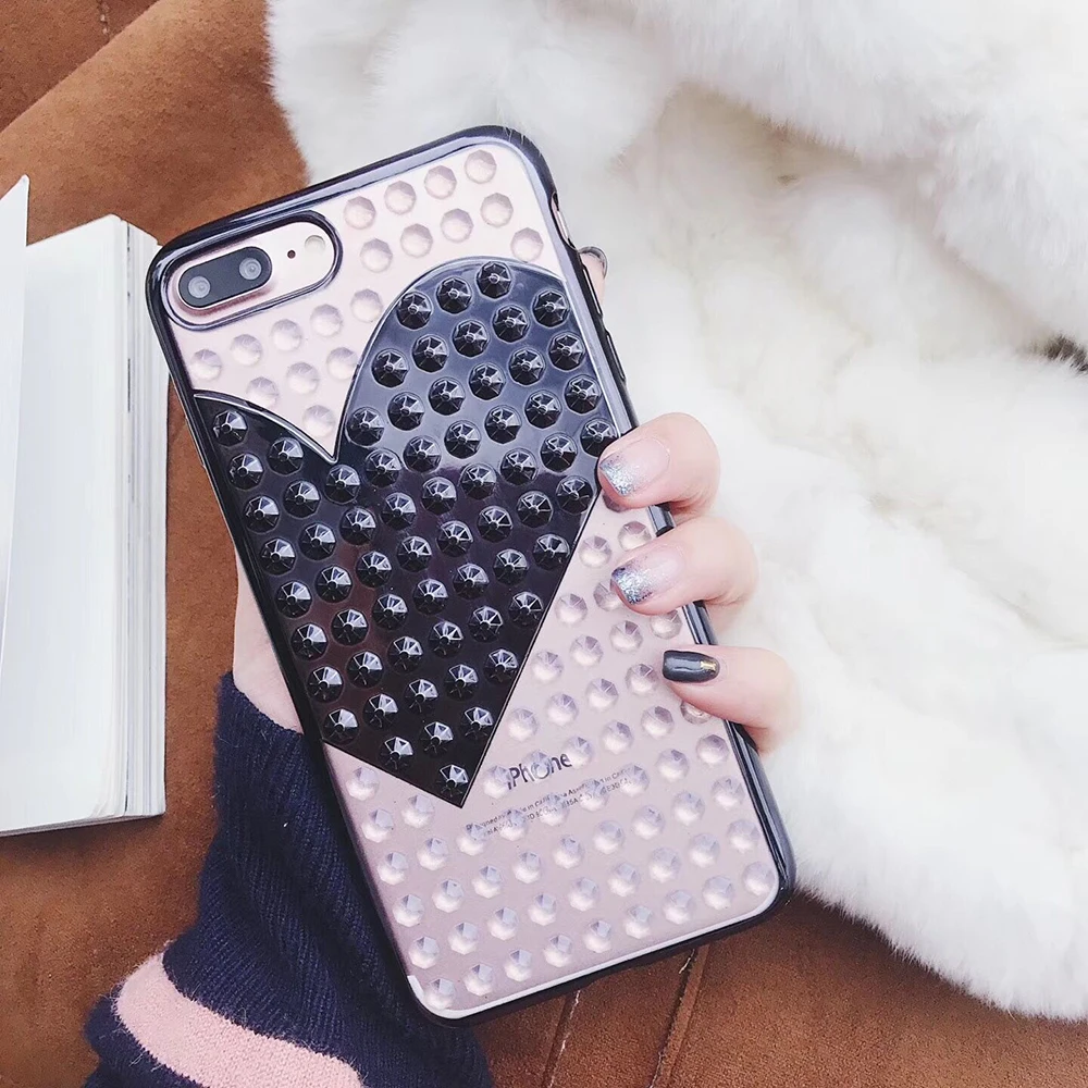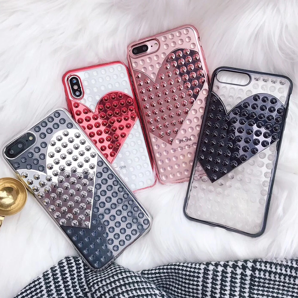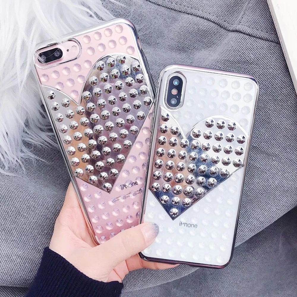 Features:Fashion Cool Electroplate Rivet Heart Soft TPU Phone Back Cover Cases