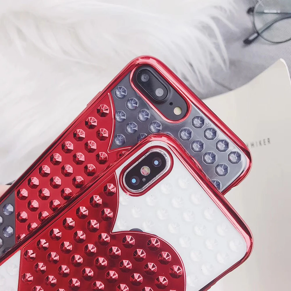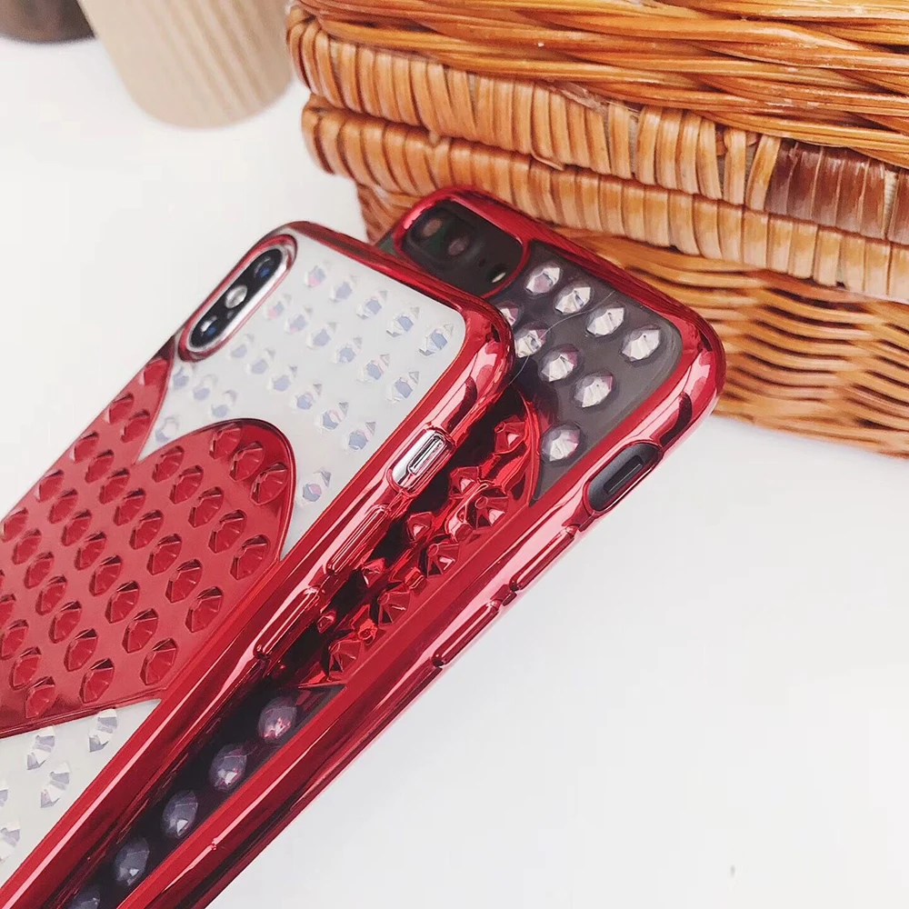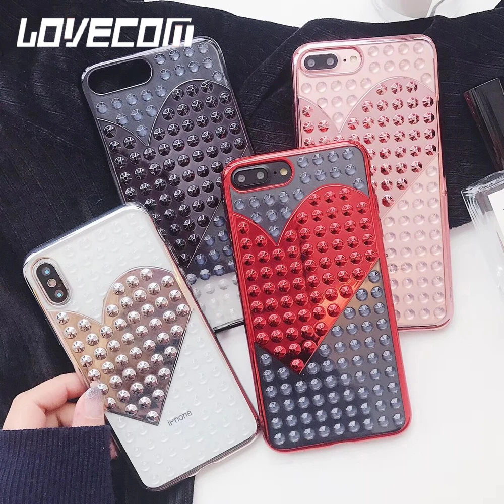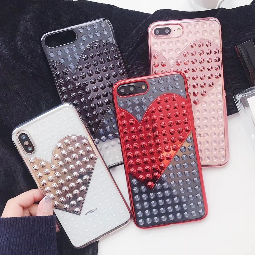 Features:Fashion Cool Electroplate Rivet Heart Soft TPU Phone Back Cover Cases