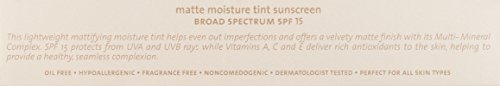 A lightweight, mattifying moisture tint evens out imperfections and imparts a velvety smooth finish with its Multi-Mineral Complex. SPF 15 protects from UVA and UVB rays while vitamins A, C and E deliver rich antioxidants to the skin. It features sheer coverage that can be layered to build