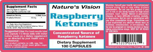 Studio : Nature's Vision Publisher : Nature's Vision Binding : Health and Beauty Product Description Raspberry ketones directly stimulate fat cells to mobilize and excrete their fatty acids, resulting in fat loss. Raspberry Ketones were originally looked at for their fat loss purposes because of their similar chemical structure to some other very well known fat loss agents. Researchers found that supplementing with Raspberry ketones, more hormone sensitive lipase (HSL), makes it into the vesicles that fat cells store their fatty acids. Raspberry ketones directly stimulate fat cells to mobilize and excrete their fatty acids, resulting in fat loss.Not for use by those with high blood pressure. 0