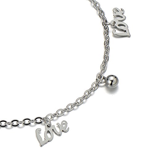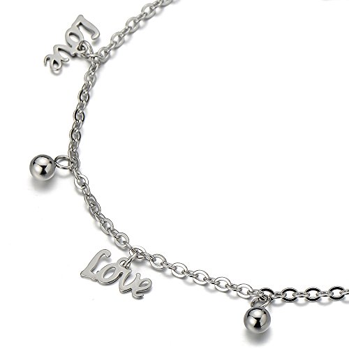 Stainless Steel Anklet Bracelet with Dangling Charms of Love Letters