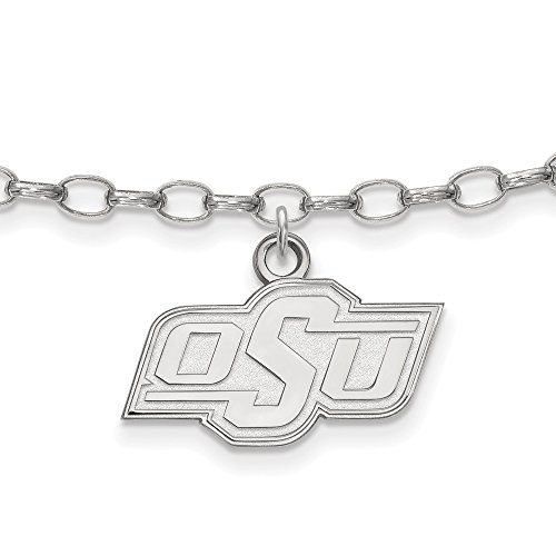 Solid 925 Sterling Silver Oklahoma State University Anklet - with Secure Lobster Lock Clasp (18mm)