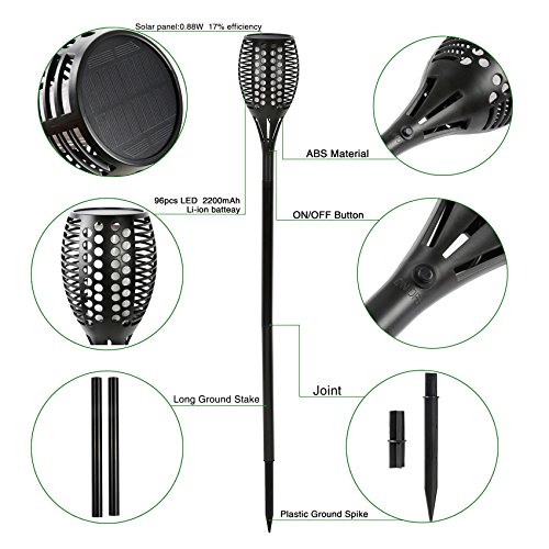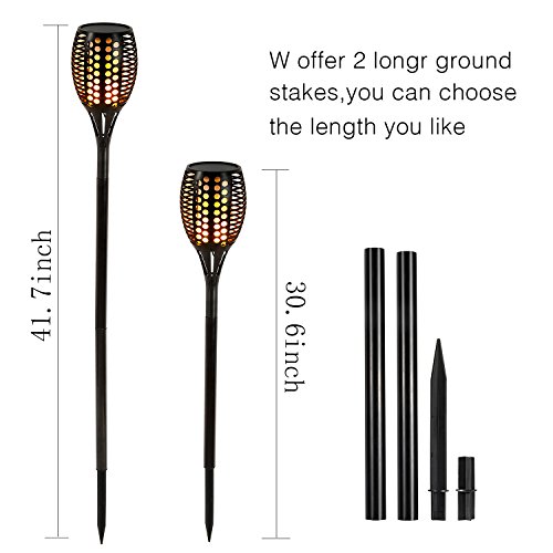 - We offer 2 longer ground stakes,you can choose the length you like.Comes with 96pcs LED, mimic extremely realistic and natural dancing flames,enjoy the romantic night