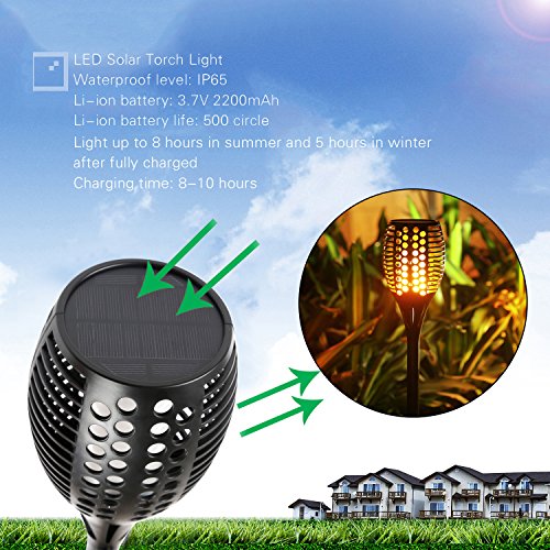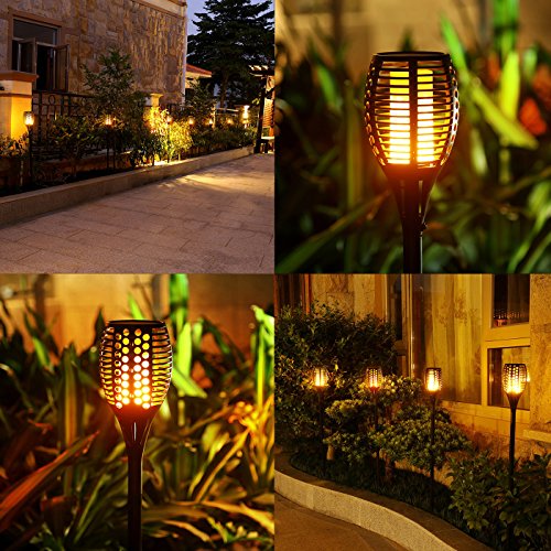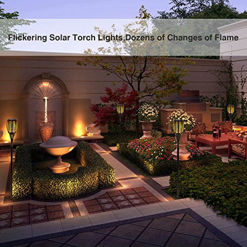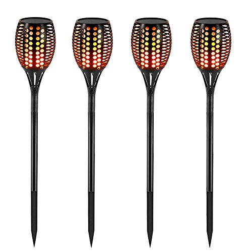 Solar Torch Lights,Balight Dancing Flame Lighting 96 LED Flickering Tiki Torches Waterproof Wireless Outdoor Light for Patio Garden Path Yard Wedding Party (Black - 4 Pack)