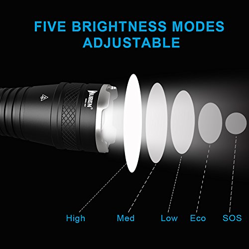 [SUPER-BRIGHT]: LT35 Led tactical flashlight Utilizes a genuine high-performance, high-efficiency Cree LED XM-L2 V5 chip (100% Imported ),using a good design PCB, MAX can be 1200 Lumens . Spotlight beam can shot far to 1050ft (320 meters) .Fully zoomable from wide to narrow beam. Features 5 adaptable settings: Eco/Low/Medium/High/SOS.