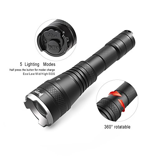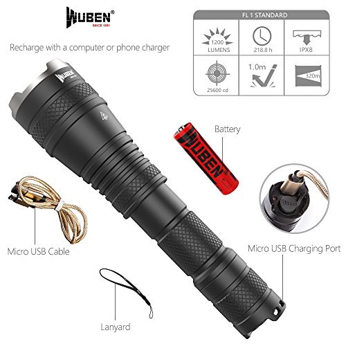 Flashlight WUBEN Waterproof 1200 Lumens CREE LED Rechargeable Battery and Zoom Maximum Spotlight and Floodlight LT35 LED 5 Light Mode Black