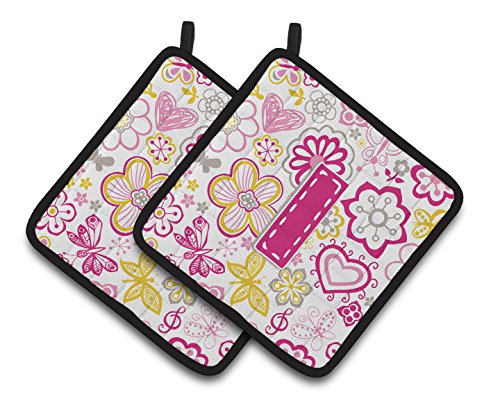 Caroline's Treasures Letter I Flowers & Butterflies pink Pair of Pot Holders CJ2005-IPTHD, 7.5HX7.5W, Multicolor