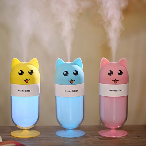 EMEO Air Humidifiers for Desktop, Baby, Bedroom, Car, Home or Office, Powered with Any USB Sources, Portable Compact Humidifying Mist with Auto Shut-off and LED Lights, Mini