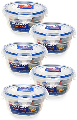 Lock & Lock Salad, Fruit Bowl Storage Container 1 Cup with Freshness Grid, Clear 5 Pack