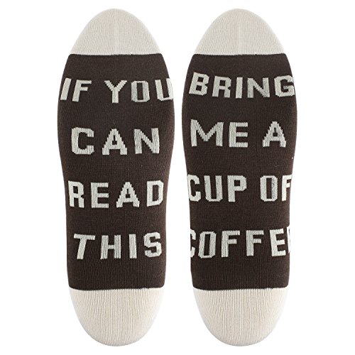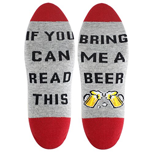 -. Feature : SIZE: Sock size 9-11 fits women shoe size 4 to 9 and men shoe size 5 to 7.5; Sock size 10-13 fits women shoe size 9.5 to 12.5 and men shoe size 8 to 13; They are pretty comfortable and come up just above your ankle. / SEWN IN LETTERING, NOT P.R.INTED: All the words are stitched directly into the socks instead of an iron-on transfer, so it won't peel off. Clever and practical stocking stuffer for your loved ones or to keep for your own enjoyment. / CUSHIONY and SOFT: Made from 80% combed cotton, comfy, stretchy and breathable. Ribbed cuffs, stay in place, and not falling apart or fading. These socks stay put and don't slip around. Very comfortable around the ankles and good for those with poor circulation/diabetes. / PRACTICAL: IF YOU CAN READ THIS, (PLEASE) BRING ME A COLD BEER; Grey with black lettering, wear to work, on a date, or lounging around the house! Smell free, moisture wicking, medium thickness, machine washable, hold up well in the laundry. / FUN GIFT AND 100% SATISFACTION: 1 pair in plastic zippered Happypop bag; Gifts for boyfriends, girlfriends, Hostess, Housewarming or Birthday, Christmas, Valentine's Day Gift. We offer 30 days money back and Prompt customer service. Shop with Confidence.