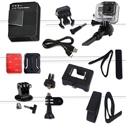 Additionally the Camera / Camcorder includes a Hermetically Sealed Waterproof Housing Case + 2 Camera Mounts + 3 Flat Adhesive Stickers + Flat Surface Mount + Clip Mount and 4 Adjustable Straps.