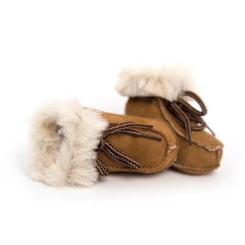 Bebebene - Handmade in Mallorca, Spain Sheepskin Baby Booties - 3-6months - Cognac