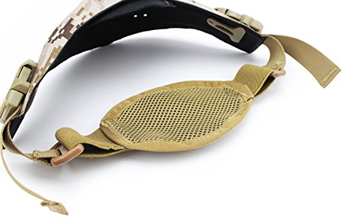 -. Feature : The Face mask made of EVA(cushion) + 900D Nylon(outside) + waterproof cloth(inside). / Lightweight design with holes, Great Air Ventilation,Breath without difficulties. / Adjustable elastic strap to get your ideal length,Compatible with most eyes protection glasses / goggles. / High quality mask through ANSI z80.3 falling ball test, with -10 degrees -- 42 degrees temperatures, resistance to 700fps. / Extremely suitable for the CS shooting games,paintball,hunting,airsoft and other outdoor sports and military use.