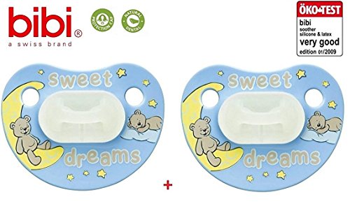 -. Title : BIBI SWISS "SWEET DREAMS" DAY/ NIGHT- No.109440 - 2x Schnuller Anatomische Silikon/ BLAU (6-12m)
