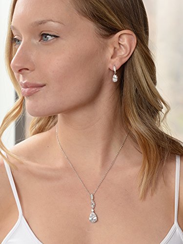 Gorgeous Wedding Necklace and Earrings Set with Gleaming Pear-shaped Teardrops is A Best-Seller for Brides, Bridesmaids, Proms, Homecoming and Mother of the Bride