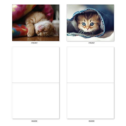 Studio : NobleWorks Publisher : NobleWorks Binding : Office Product Product Description Who can resist the antics of cute kitties? The images on these blank notecards will bring a smile to the face of whomever receives one, but it will be the personal message contained inside that will warm their heart. According to a 2015 survey by the American Pet Products Association, 42.9 million American households own more than 85 million pet cats. Cats have been domesticated for at least 3,600, and possibly some 5,000, years, according to Wikipedia. Clear depictions of domestic cats appear in paintings from Ancient Egypt. In an article posted on Livescience.com, nearly 2 million cat videos were posted to YouTube in 2014 alone, Jessica Gall Myrick, a media researcher at Indiana University in Bloomington, who noted that these videos received almost 26 billion views. In fact, cat videos received more views per video than any of YouTube's other content categories, Myrick's research suggests. Watching the online antics of our kitty friends can boost our energy level, heighten our positive emotions and decrease our negative feelings, according to Myrick. These delightful note cards don't compromise on any of the attention to detail and production quality our company has been known for over the past 35 years. Each series packs in 10 fabulous, theme-related designs intended to deliver a big bang for your buck. Available blank or with a greeting, these versatile note card sets are a great and easy way to correspond ... and look great framed, too! Try framing them individually, or grouping several in a collage frame, to create visually appealing wall decor. 0