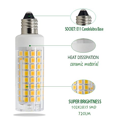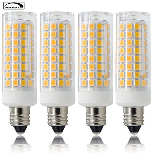 E11 LED, All-New Dimmable E11 Candelabra Base Bulbs, 75W 100W Equivalent, 120V 8W JD T4 Bulb, 102X2835SMD 360 degree Indoor lighting (Pack of 4) (Warm White)
