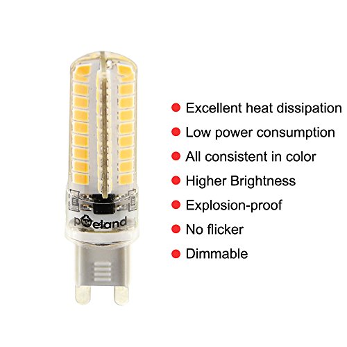 Poeland G9 Base LED Light Bulbs 5W 110V Dimmable Pack of 6 Warm White