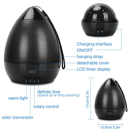 - STAR PROJECTOR/ NIGHT LIGHT: Newest adorable egg shape star moon projection lamp with removable outer cover, you can operate it as a night light or enjoy an wonderful stars show as a star lamp projector. Night light for kids with sturdy hanging strap makes it easier to your fishing,camping or living.