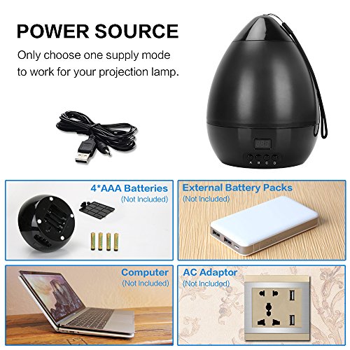 - 2 POWER WAYS: This light projector powered via a USB cable connect to your computer, laptop, wall jack or power bank. Also it can be powered by 4 AAA batteries(Batteries are NOT included). Please note that USB cable and batteries can not be used at the same time. More convenient, more joy.