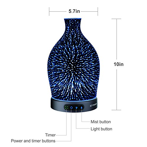 SZTROKIA Essential Oil Diffuser, 300ml Aromatherapy Ultrasonic Cool Mist Humidifier, Color Changing LED Lights with 3D Effect and Waterless Auto Shut-off, Durable Metal Base (Vase)