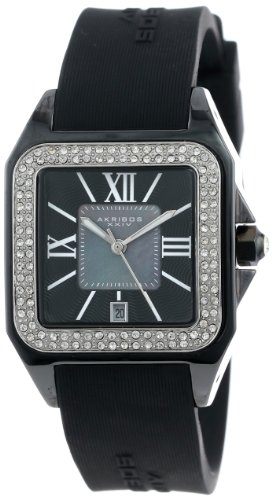 -. Title : Akribos XXIV Women's AK546BK Square Ceramic Case and Rubber Strap Watch