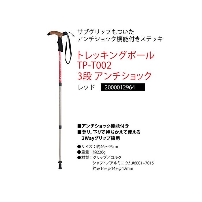 원본상품명: コルマン トレッキングポル TP-T002 3段 アンチショック レッド 2000012964