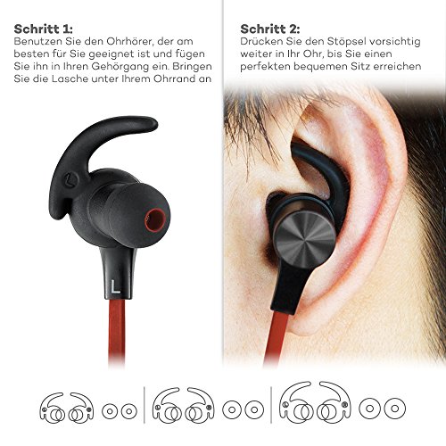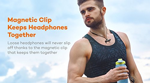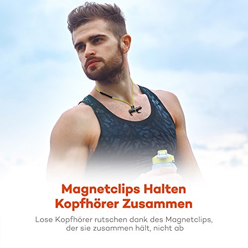Bluetooth-Kopfhorer mit eingebauten Magneten: die beiden Ohr-Adapter konnen aneinander befestigtwerden, fur hohere Mobilitat, sicheren Transport und Komfort
