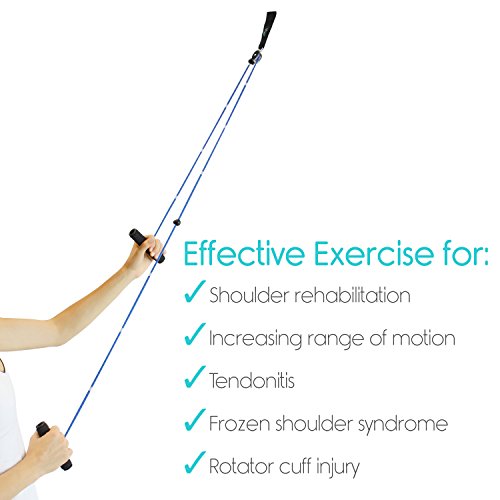 IMPROVES RANGE OF MOTION: Improves the range of motion of the affected shoulder for arthritis sufferers and those suffering from tendonitis, frozen shoulder syndrome, rotator cuff injury or bursitis. Slowly increase or limit the range of motion using the included button stoppers for safe effective shoulder exercise.