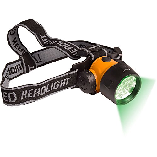 Studio : Active Air Publisher : Active Air Product Description Green LED Headlight: This convenient, practical, hands free lamp has 17 high intensity LED bulbs that can be used with different settings. Light can be tilted to maximize its efficiency. 100,000 hours of burn time. Uses three AAA batteries (not included).