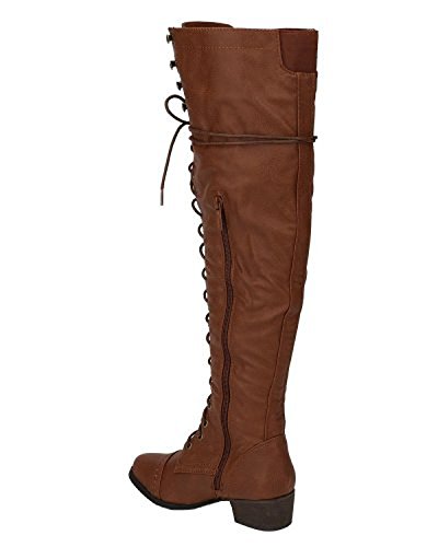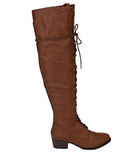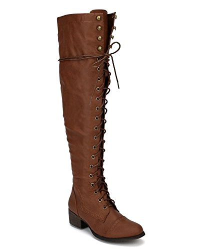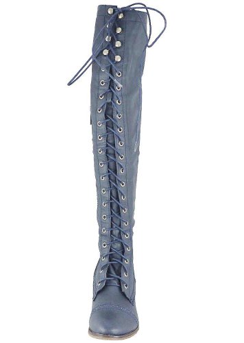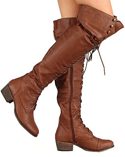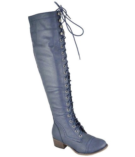 Binding : Apparel Product Description Finish off your look with an edgy touch in these military boots! Featuring round toe, low heel, over knee high construction, lace up closure front, partial side zip for easy on/off, smooth interior lining, and finished with lightly padded insole 0
