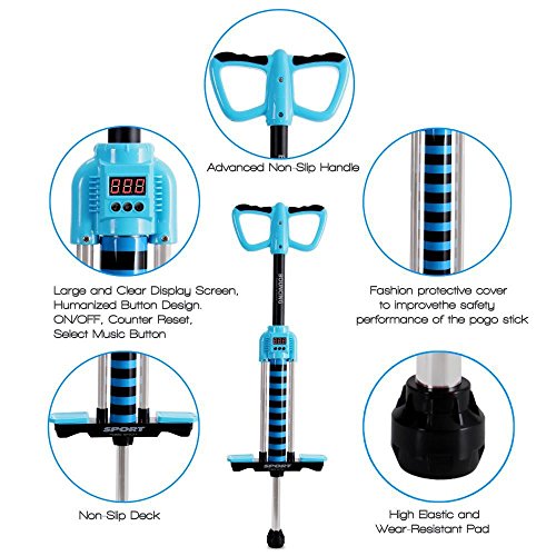 Studio : Dimple Publisher : Dimple Binding : Sports Product Description Features: Next Generation Smart Pogo Stick! Promotes Bone Growth to Help the Kids Stay in Shape Bounce with Beats: Built-in Button Activated Music Comfortable Non-Slip Handle Grips Digital LCD Display Screen Smart System Keeps Count of Each Bounce Safe, Durable Reliable Design Reinforced Anti-Slip Foot Pedals Designed for Ages 6 ? The Kids Will Have Fun While Exercising!