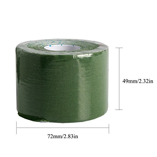 -. Feature : It does not contain drugs, but it can effectively reduce the damage to muscles, tendons and soft tissue. / Stickier, hypoallergenic, water resistent adhesive that won't fall off during competition / 180% stretch, helps reduce skin irritation. Also allows fuller range of motion / Note: do not tear off the whole inner layer of bandage first, you'd better tear off little by little as you paste. If teared off the whole inner layer, the bandage will be easy to roll together.