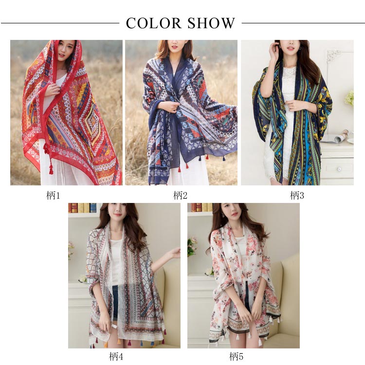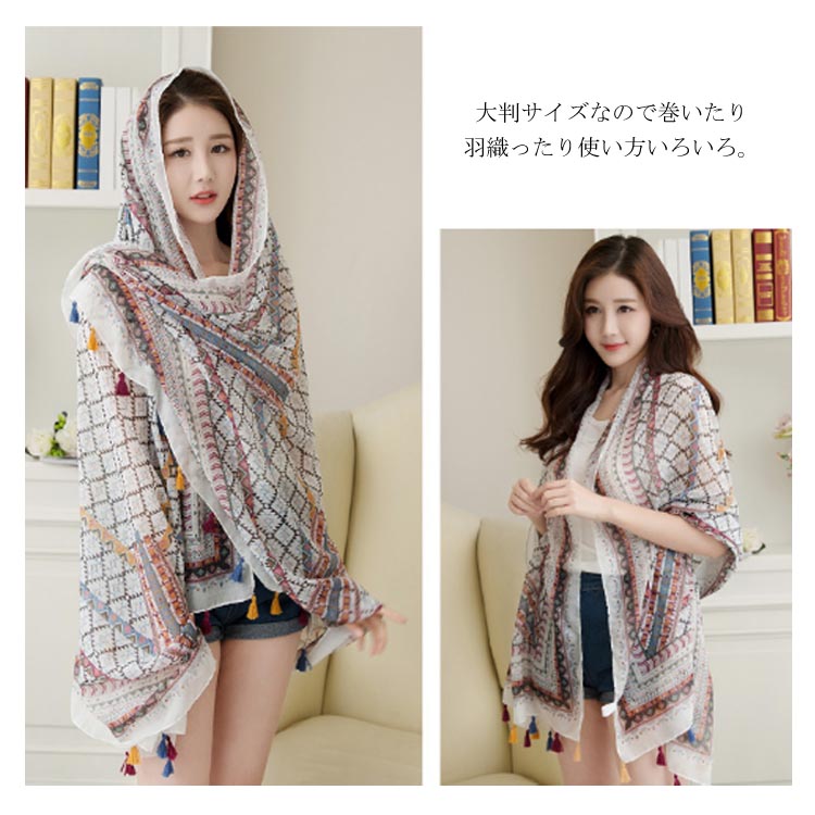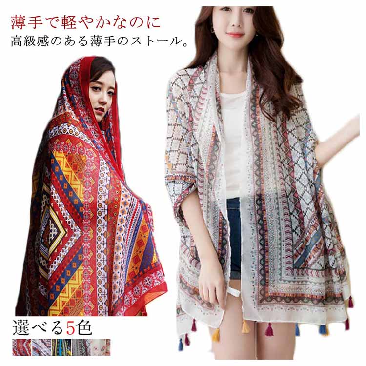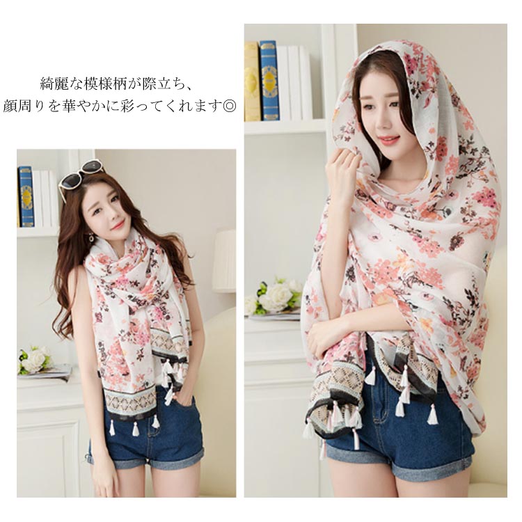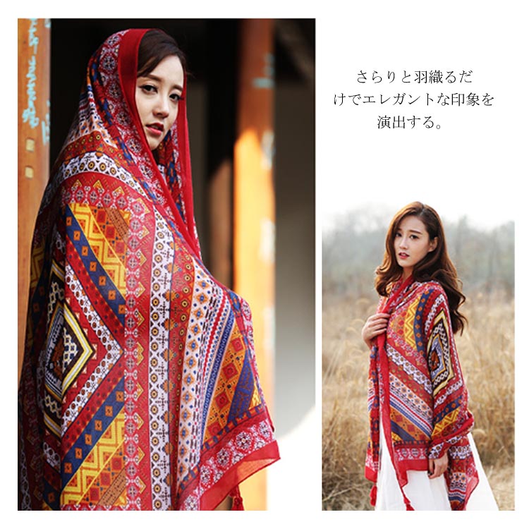 | 薄手で軽やかなのに高級感のある薄手のストール。さらりと羽織るだけでエレガントな印象を演出する。ふわふわと軽い素材で、すべすべとした柔らかな肌触り。大判サイズなので巻いたり羽織ったり使い方いろいろ。綺麗な模様柄が際立ち、顔周りを華やかに彩ってくれます◎これからの季節に日焼け防止・紫外線対策にも役立つアイテム! | |