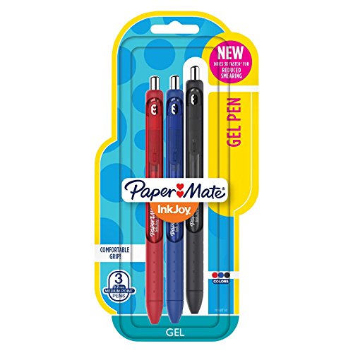 Dries 3X faster* for reduced smearing, Smooth colorful ink keeps the ideas flowing across the page and brightens your writing, Ergonomic comfort grip wraps the entire gel pen, 0.7mm medium point spreads ink beautifully, Includes: Jet Black, Pure Blue Joy and Red Rush gel pens