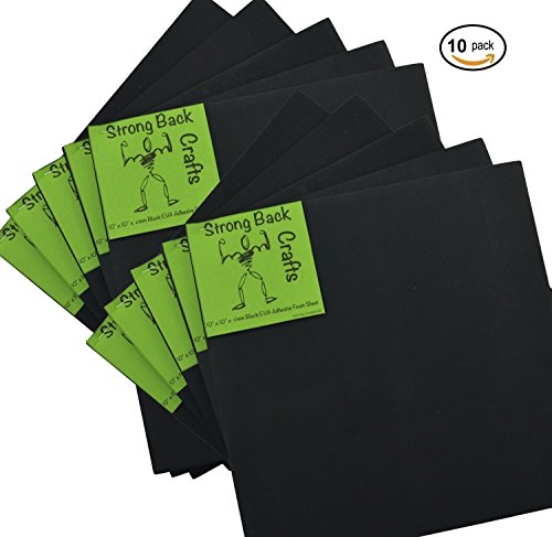 Black--(10 PACK)--6mm thick--Self-stick Adhesive Foam Sheets 9.5" x 9.5" EVA High Density by Strong Back Crafts- for cosplay costumes, Halloween outfits, traction pads, & scrapbooking