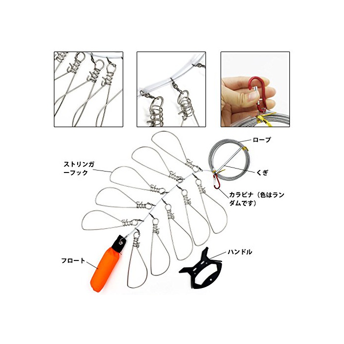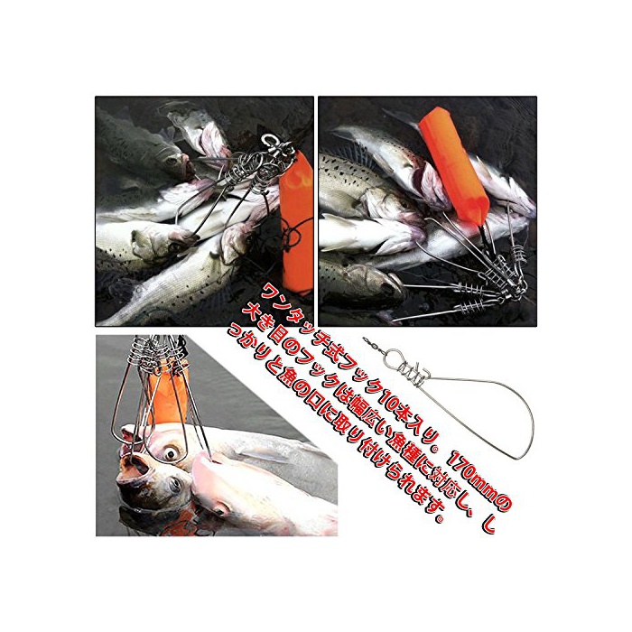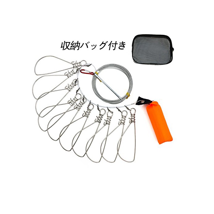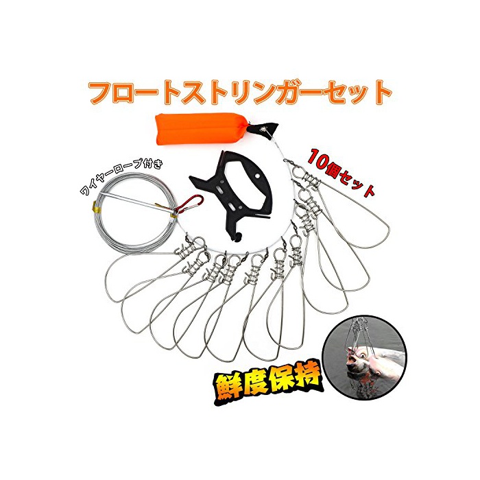 원본상품명: Hiveseen フロ?ト付きストリンガ? 10個入り ワンタッチフック10本付き 防波堤釣り 魚の新鮮さを保つ ステンレス製 ?納バッグ付き