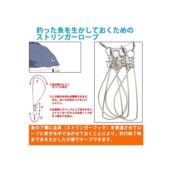 ?이 stringer《―》를 사용하는 것에 의해그 자리에서 물고기를 유지하고, 살았던 채로 물고기를 연결해 헤엄치게 해 놓을 수 있는 모아 두고, 물고기의 신선함을 유지할 수 있습니다.