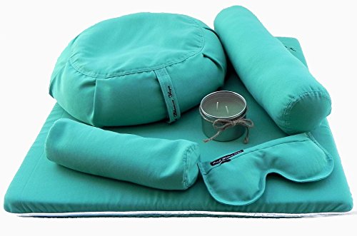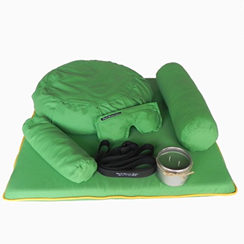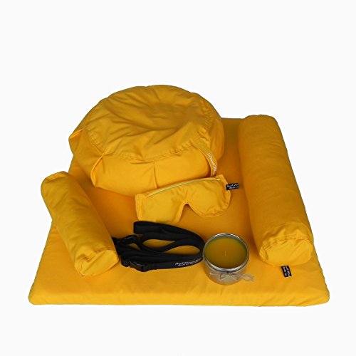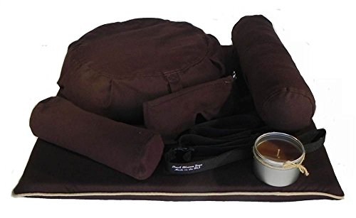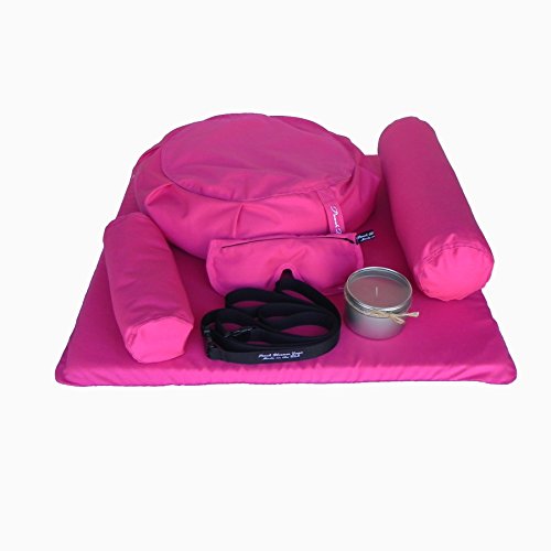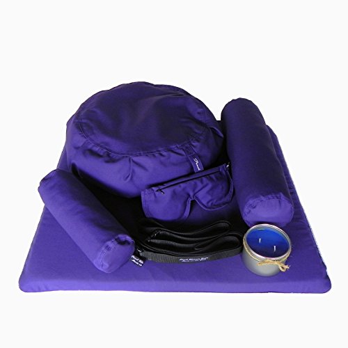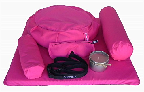 Studio : Peach Blossom Yoga Publisher : Peach Blossom Yoga Binding : Sports Product Description For the new or the seasoned yogi, the Peach Blossom Yoga 7-Piece Deluxe Yoga Set is an indispensable addition to any practice. This set includes all of Peach Blossom Yoga's best-selling items, including its buckwheat-filled zafu cushion, zabuton meditation mat, neck and back bolster pillows, eye pillow, adjustable travel strap, and soy candle. Choose from available colors to personalize this set and enjoy the soft polyester and cotton blends and buckwheat fills for extra comfort and support. Everything is made in the U.S.A. and comes with a lifetime manufacturer's warranty. ? Dimensions: Mat: 26W x 26D x 2H in. Buckwheat eye pillow: 11W x 5D x .5H in. Buckwheat zafu cushion: 19W x 19D x 4H in. Zambuton mat: 26W x 26D x 2H in. Buckwheat neck bolster: 13W x 3H in. Back bolster: 19W x 5H in. ? About Peach Blossom Yoga We know how important your yoga practice is, and Peach Blossom Yoga ensures you have the best mats, towels, and props to keep you centered, grounded, and relaxed. Our American-made products are handmade and handcrafted one piece at a time, making them some of the highest-quality accessories on the market. Made in the small north Georgia town of Canton, each Peach Blossom Yoga product is proudly backed for life. Our yoga family is honored to serve you and enhance your practice with love and consistent quality. Polyester/cotton blend, poly foam, poly fill, buckwheat fill. Choose from available colors. All-inclusive yoga and meditation set for any level yogi. Includes: cushion, mat, neck and back pillows, eye pillow, strap, soy candle. Hidden zippers allow for easy removal. Washable soft poly-cotton covers. Buckwheat filling conforms to your body for ultimate relaxation. Mat includes quick-release straps. Mat dimensions: 26W x 26D x 2H in.. Made in U.S.A.. Includes lifetime manufacturer's warranty. 0
