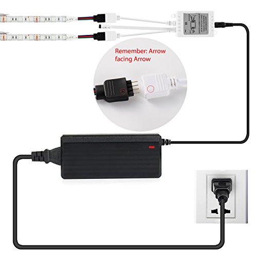 - QUALITY & SERVICE GUARANTEE: Comes with a full 12 months warranty. If the power adapter or other accessories do not work, please contact us for help. Connect the load and power line; Remember that the LED strip light arrow must face the signal receiver arrow(see the picture); Make sure all connection right before power switched on; Insure there is no obstacle between the IR controller and the receiver when operating; Take off the plastic sheet of remotes battery before using.