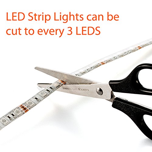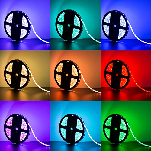 - SPECIAL FEATURES: Come on a spool, in a silicone covered strip with led modules build in. The silicone is what provides the WATERPROOFING of the lights. CUTTABLE and LINKABLE, You can shorten the color changing LED Strip Lights because it is cuttable every 3 LEDS along the cutting marks. Its 5M adhesive tape backing can be fit many dry flat smooth surface.