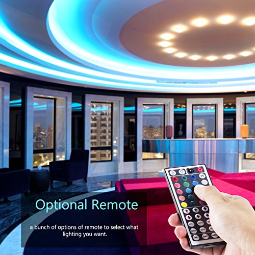 - OPTIONAL REMOTE: The remote gives you a bunch of options to select what lighting you want. You can change the brightness level, the colors, and you have the option to make the lights fade from color to color quickly or slow, or to have them jump from color to color. The lighting is amazing and very bright.