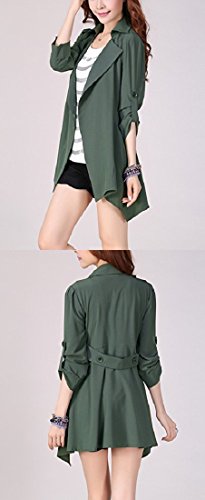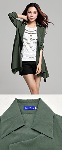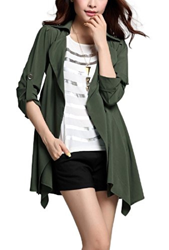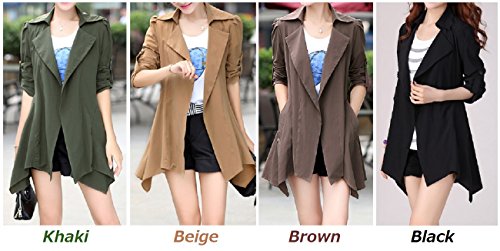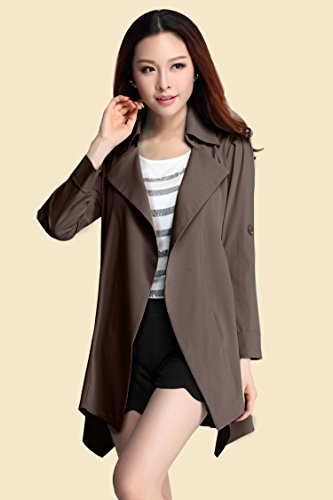 -. Feature : さらりと羽織ってお洒落にキメる、ショート丈のトレンチ風スプリング/オータム・コートの登場です。ビッグ・カラーがデコルテを綺麗にみせ、タックでふんわり仕上げたショルダーとロールアップ・スリーブが二の腕を華奢見せしてくれる、女性らしいフェミニンな印象を与えるアウターです。 / ウエストラインを意識したAラインのボディデザインと、アシンメトリーにカットされたフレア調の裾広がりが女性らしい美ライン・シルエットを作ります。前ボタンなしのオープンスタイルなので、体型を気にされる方やマタニティをお探しの方にもおすすめです。 / 肌ざわりの良い薄いベロア調素材なので、春秋はもちろん、さっと畳んでバッグにしまえばポータブルに夏の冷房対策や紫外線対策にも!インナーやストール マフラー スヌードなどのファッション小物を変えれば冬でもスタイリッシュに使えるシーズンレス・アイテムです。 / カジュアルなデイリーユースから、ビジネス、オフィス、通勤、通学、デートにも。襟付きできちんと感もあるのでフォーマルやちょっとしたオケージョン(パーティ、結婚式二次会、お呼ばれ、ママ会、女子会、イベント、季節行事等)にも。ショートパンツやタイト・スキニー・デニム、パンプスやブーツを合わせてあなただけのコーデを楽しんで下さい。 / 毎日着ても飽きのこない着まわし力の高いシンプルなデザイン。年齢問わず(20代、30代、40代、50代)季節問わず(春、夏、秋、冬)オールシーズン活躍すること間違いなしの便利アイテムです。 【カラー】ベージュ、ブラウン、カーキ、ブラック【サイズ 】M、L、XL 【素材】アクリル(80%)、ポリエステル(20%) 裏地:あり、付属品:なし