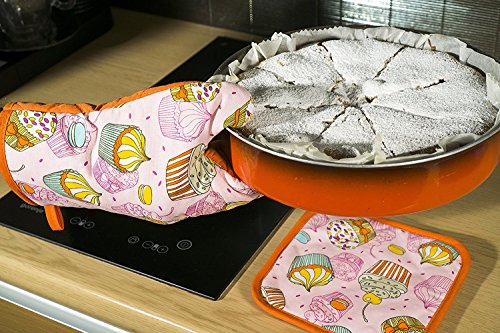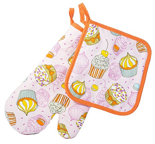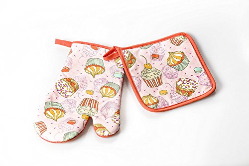 Cupcakes Thumb Mitt Кitchen Wears Print Pot Holder Cupcakes and Designs Potholders Set