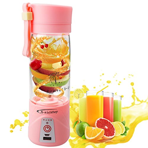 A-SZCXTOP A-szcxtop 다기능 미니 쥬스 USB의 쥬스 미니 전동 쥬스 컵 과일 믹서 380ml미니 보틀 블랜더 후루츠 믹서 야채미키사 휴대식 운반이 편리 (스위치