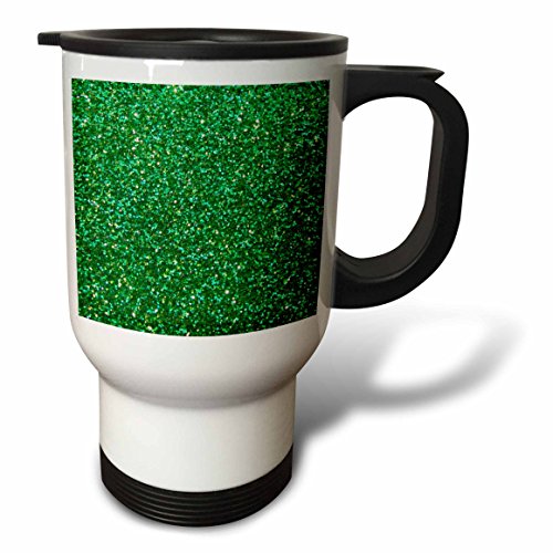 3dRose tm_112931_1 Emerald Green Faux Glitter-photo of glittery texture-Bling Sparkles Sparkly glam glamorous diva-Travel Mug, 14 oz, Stainless Steel, White