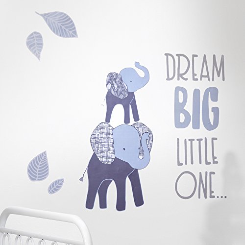 -. Title : Lambs & Ivy Indigo Dream Big Little One Elephant Wall Appliques, Gray/Blue