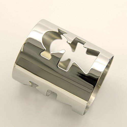 - Crafted from durable 18/10 stainless steel; includes cutout figure to wear or display