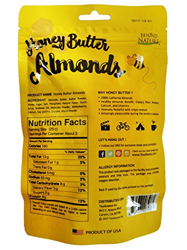 -. Title : TeaAroma Honey Butter Almonds, 2.75oz (78g), Pack of 6, Beyond Nature Snack