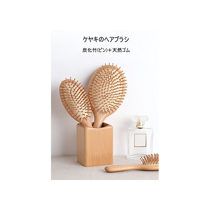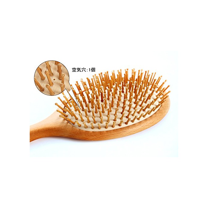 재질:탄화죽(핀)고, 느티나무의 나무(무늬)+천연 고무(받침대) 길이:22cm폭:6.5cm 공기혈:1 개환형헤어 브러시